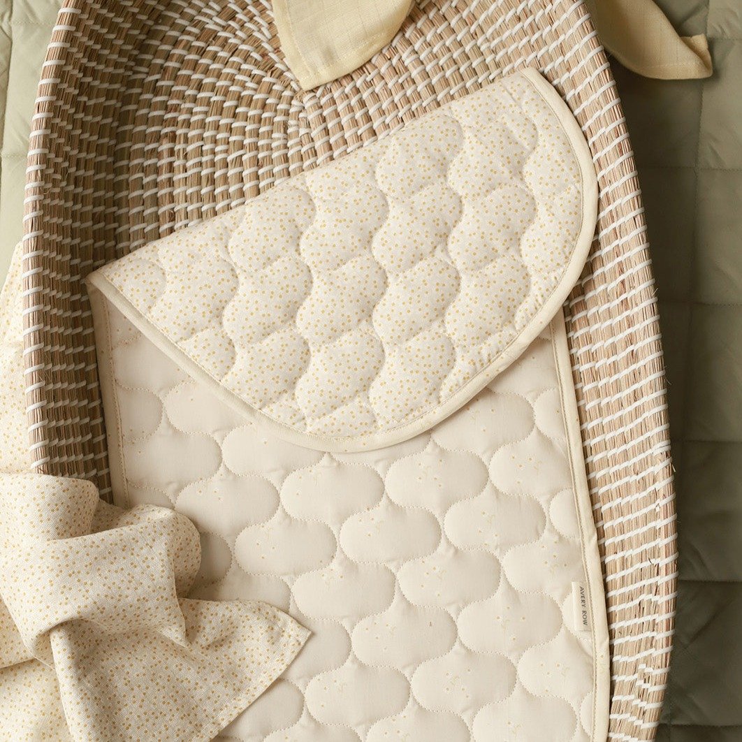 Mjúkt og vandað fóður í skiptikörfu sem gerir bleyjuskipti notalegri og þægilegri fyrir barnið. Fóðrið er quiltað, mjúkt viðkomu og hentar vel í skiptikörfur, Moses-körfur og vagnkörfur.