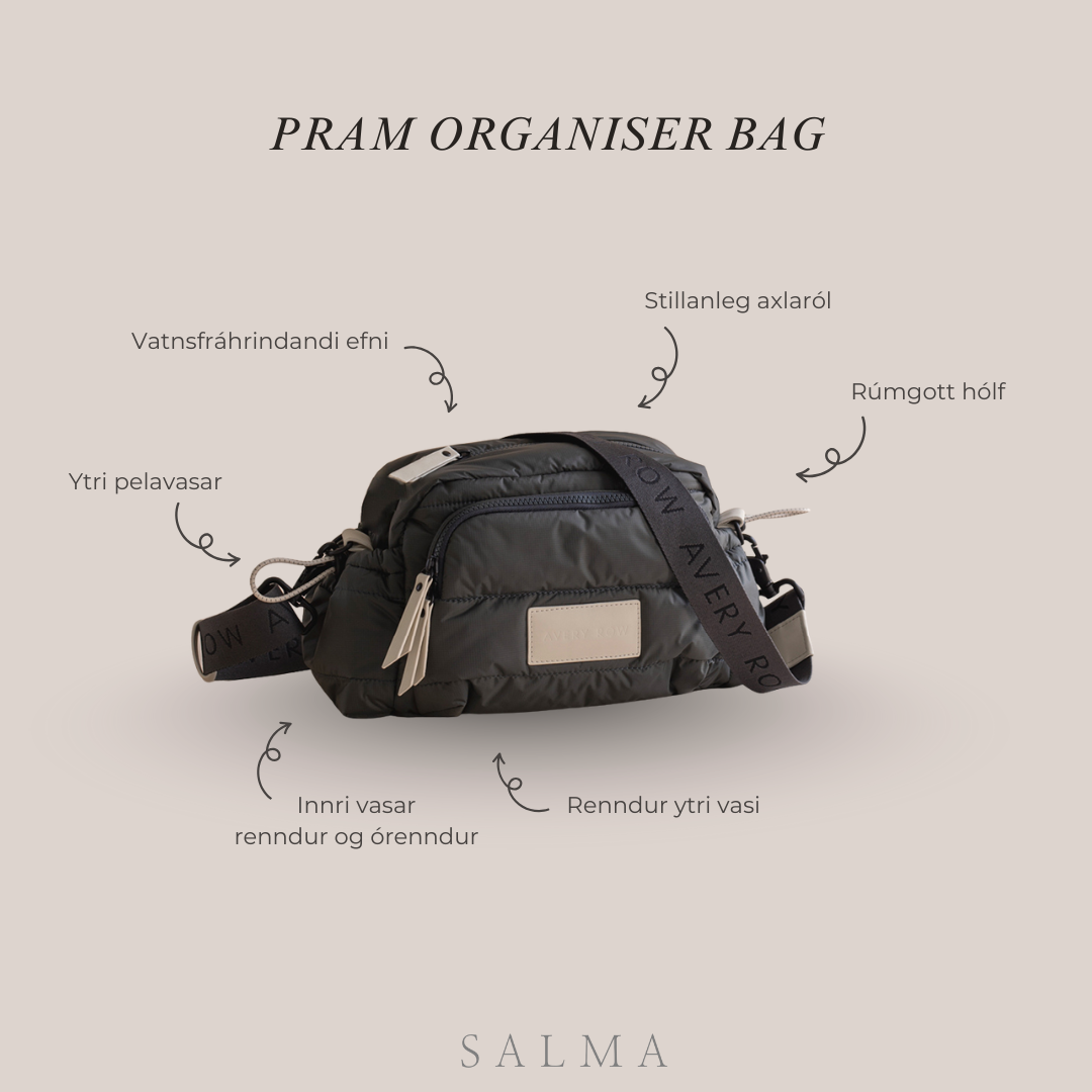 Hvort sem þú ert á leið í garðinn eða að sinna erindum þá heldur þessi þægilega barnavagnataska öllu snyrtilegu, aðgengilegu og stílhreinu.